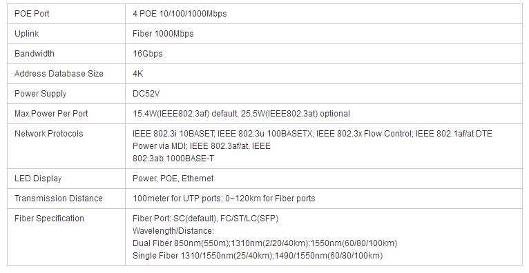 The POE switch provides power and data transmission via Cat cables. POE ports supply power at the standard of IEEE802.3af/at.Auto-sensing function can supply power to PD device (IEEE802.3af/at standard). If the PoE device disconnected, it would stop supplying power. The POE switch features simple and reliable design, automatic identification of PoE supply voltage and power, speed, full duplex and Auto Uplinkcable type. This cost-effective switch can apply to wireless access point (AP) and IP-based surveillance Network solutions. Feature ◆ IEEE 802.3af/at power on POE ports ◆ Supply power to wireless access points and surveillance cameras over Cat cable ◆ POE ports support MDI/MDIX ◆ Support PoE power up to 15.4W(IEEE802.3af)/25.5W(IEEE802.3at) for PoE ports ◆ POE Lines: End-Span(12+,36-), Mid-Span(25+,78-) ◆ Support IEEE 802.3x flow control for Full-duplex Mode and back-pressure for Half-duplex Mode ◆ LED indicators for monitoring power, link, activity and speed ◆ Network Media: 10Base-T: Pair 2 Category 3(cat 3) and above UTP/STP(≤150m);100Base-TX: Pair 2 Category 5(cat 5) and above UTP/STP(≤150m);1000BASE-TX: 6 Category and above UTP(≤150m) ◆ Forwarding Mode: Store-And-Forward ◆ MTBF: 100,000 hours Application ◆ Wireless Access Point ◆ IP Camera ◆ IP Phone ◆ Computer Networks ![]() |